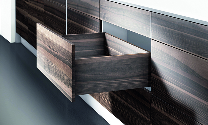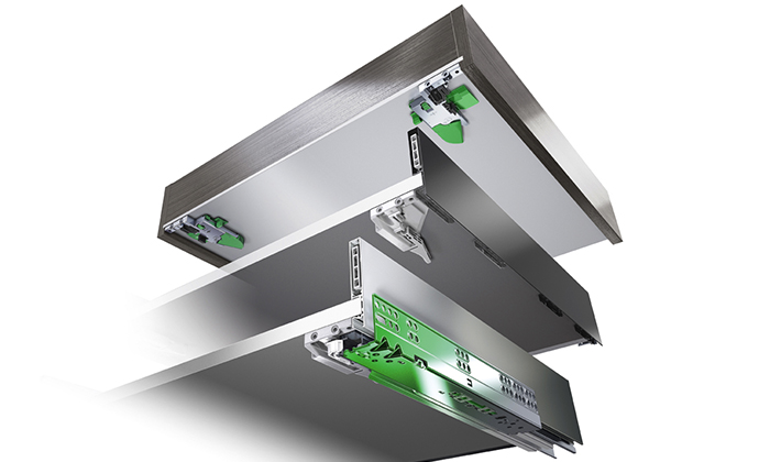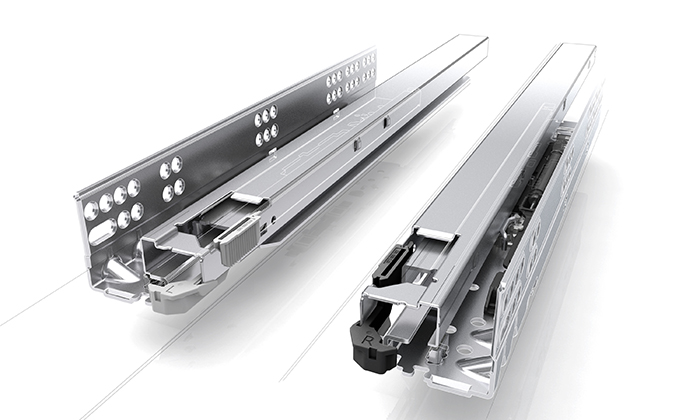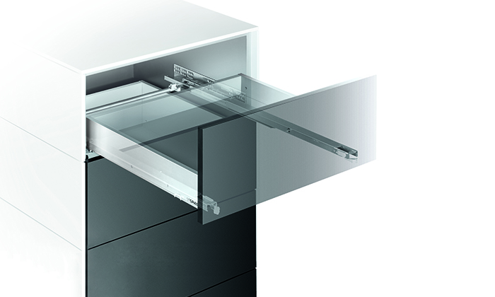 不凡的设计,极高的稳定性,四维调节,优异的滑动性能,无声轻盈闭合,完美的开合体验,格拉斯Dynapro坦泊全拉出隐藏阻尼导轨让您设计无界。